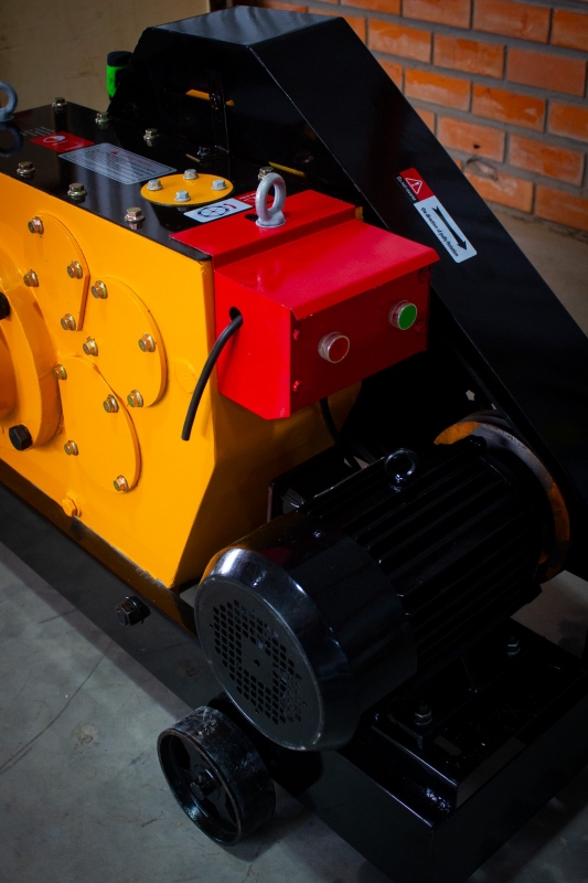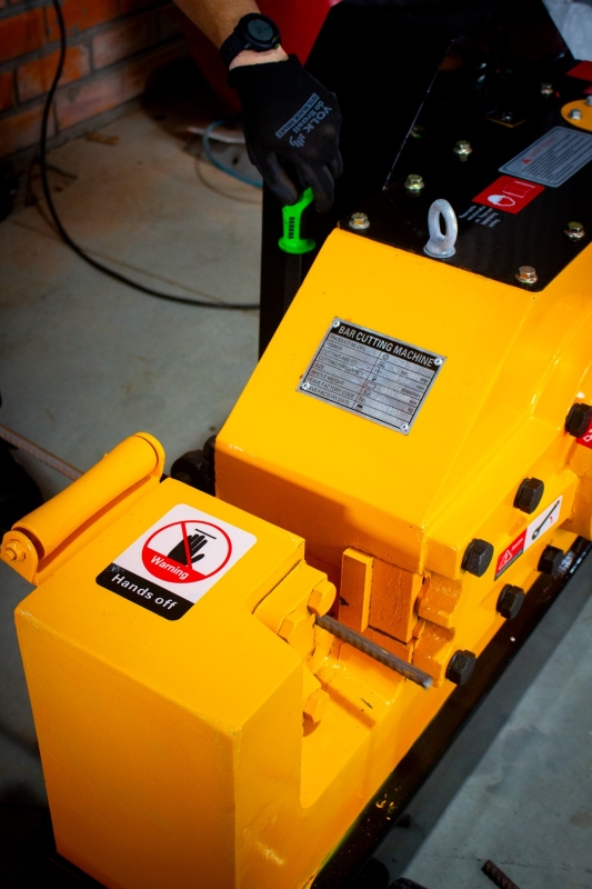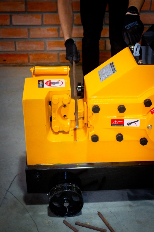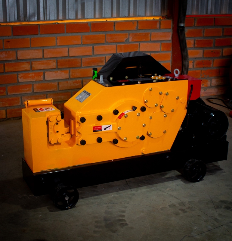 Esta é a máquina de corte de vergalhões GQ50A, projetada para cortar vergalhões redondos e deformados com eficiência e precisão. É uma ferramenta robusta e potente, ideal para canteiros de obras e indústrias que exigem alta performance no corte de aço.