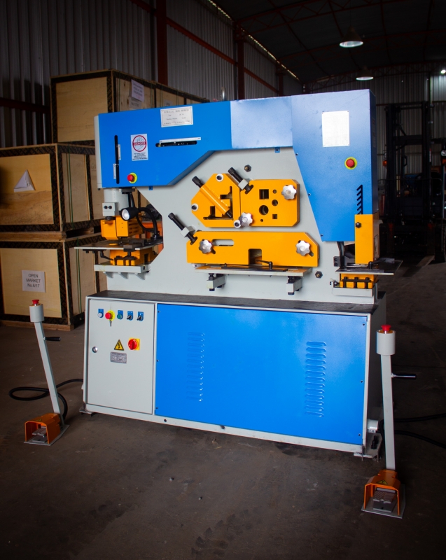 Esses equipamentos são destinados ao processamento de chapas, barras e perfis de metal, oferecendo funcionalidade multifuncional. Possuem uma capacidade de 90 toneladas, capacidade máxima de corte variando entre 15 a 20 mm, e comprimentos máximos de corte de 400 mm e 480 mm, respectivamente.