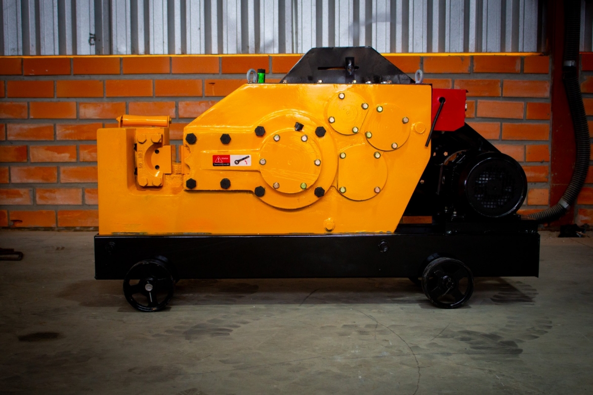 Esta é a máquina de corte de vergalhões GQ50A, projetada para cortar vergalhões redondos e deformados com eficiência e precisão. É uma ferramenta robusta e potente, ideal para canteiros de obras e indústrias que exigem alta performance no corte de aço.