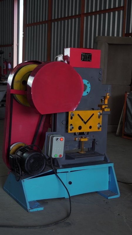 É uma máquina combinada de punção e corte de alta capacidade, projetada para trabalhos pesados em oficinas metalúrgicas, indústrias e serralherias. Com estrutura robusta e motor de 4 kW, realiza cortes de chapas, perfis, cantoneiras, barras chatas, redondas e quadradas, além de furações precisas em chapas de até 12 mm.
