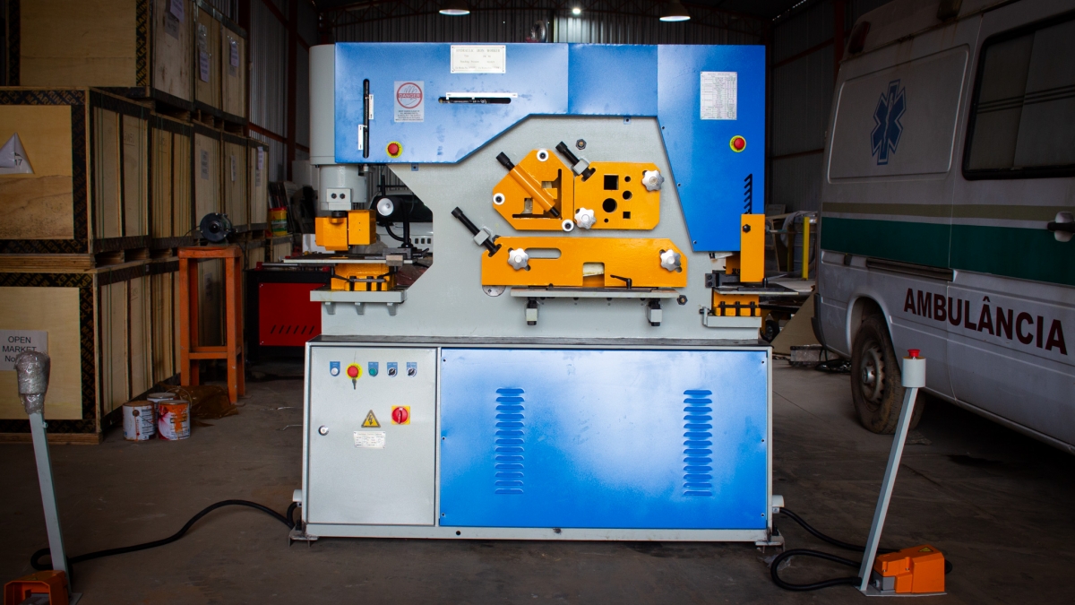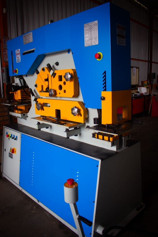 Esses equipamentos são destinados ao processamento de chapas, barras e perfis de metal, oferecendo funcionalidade multifuncional. Possuem uma capacidade de 90 toneladas, capacidade máxima de corte variando entre 15 a 20 mm, e comprimentos máximos de corte de 400 mm e 480 mm, respectivamente.